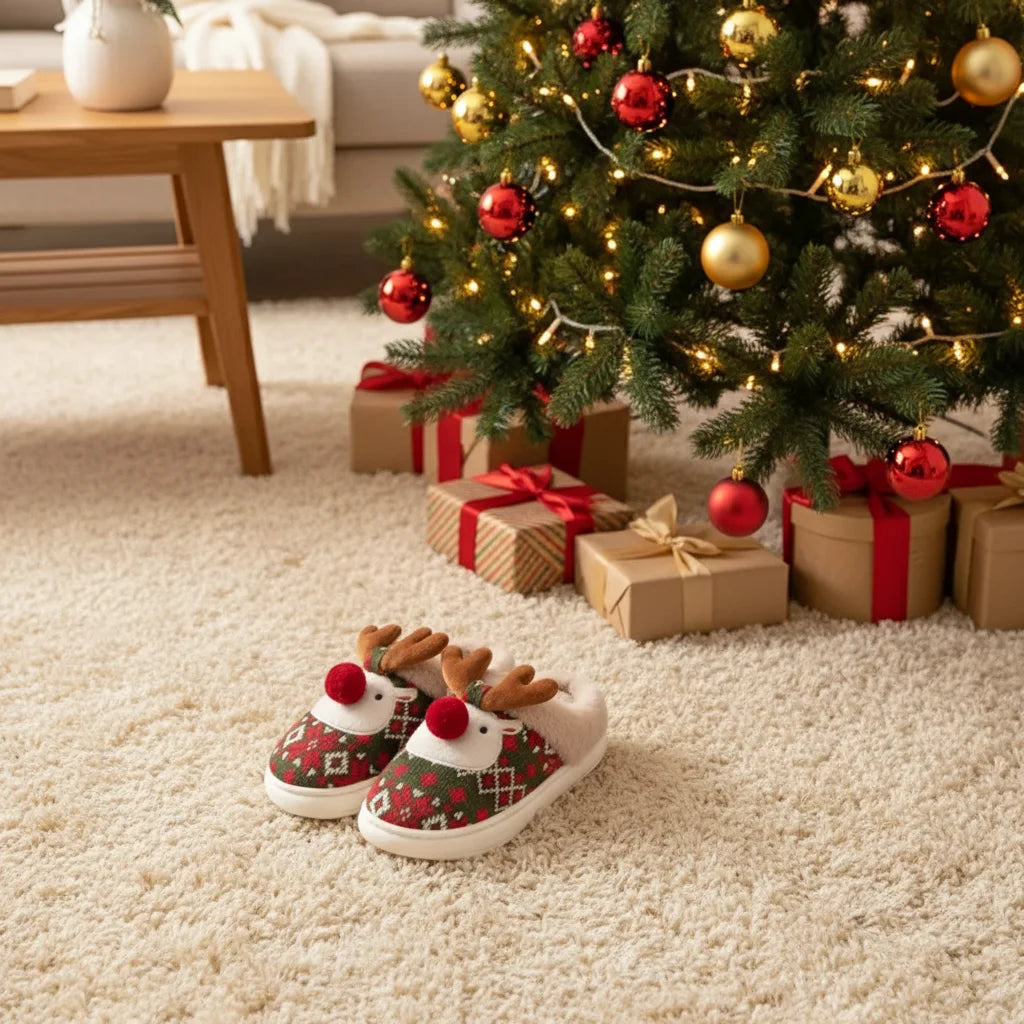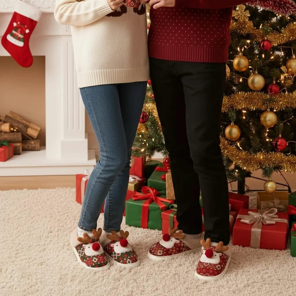 Effortless charm and ultimate comfort. Our Festive Reindeer Slippers make every gathering merrier!
