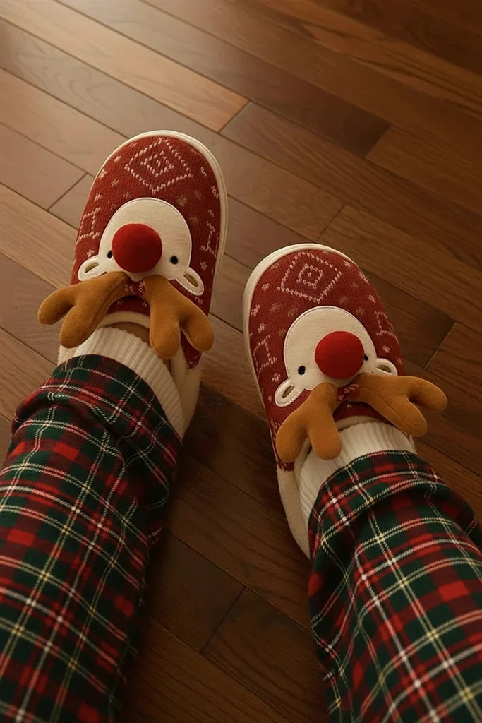 These plush reindeer slippers wrap your feet in a hug of ultimate softness, keeping you perfectly cozy through every festive moment.